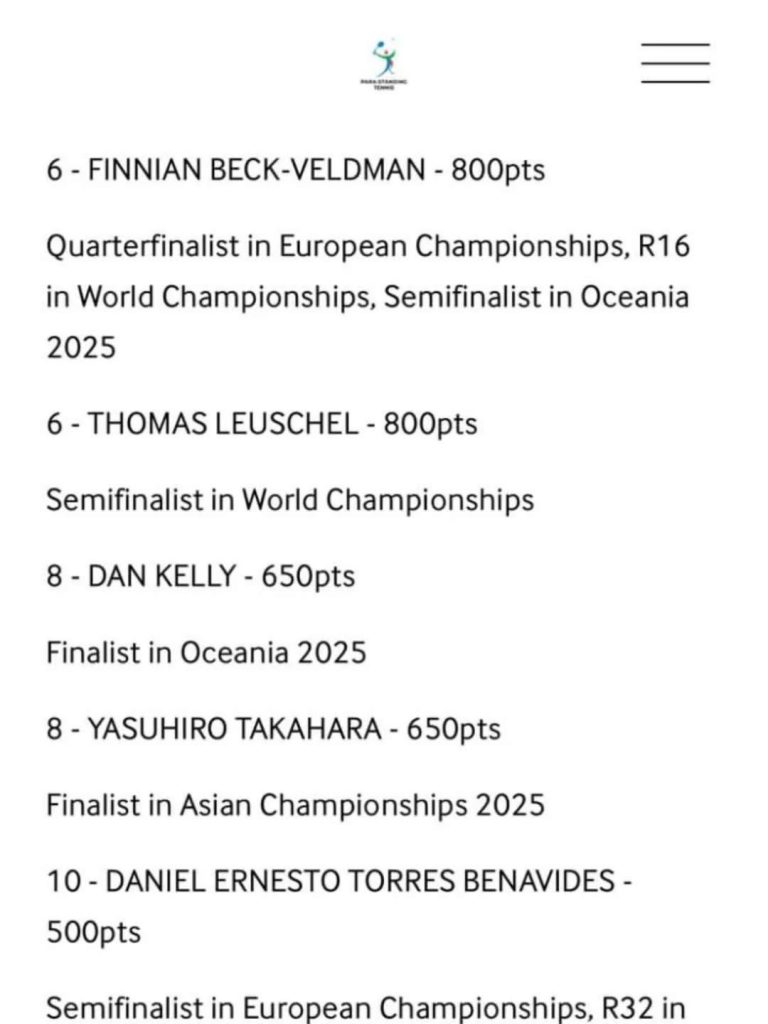 Daniel Torres TOP 10 Ranking Internacional Para Standing Tenis Nuestro vinotinto Daniel Torres con la reciente actualización del Ranking Internacional del Para Standing Tenis ocupa ahora el puesto 10, Felicidades Daniel por este logro, seguimos!!!